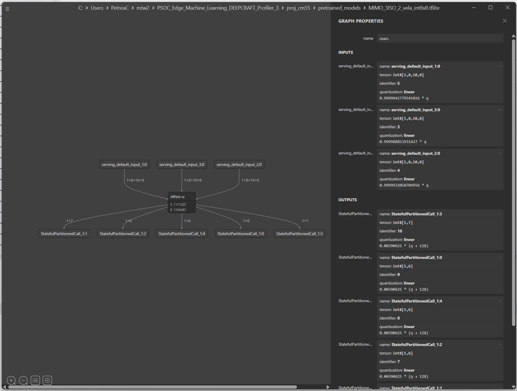 Some .tflite models use verbose tensor names, such as serving_default_input:1:0 for inputs and StatefulPartitionedCall_1:1 for outputs. For these models, name the arrays in the NPZ file as "input_0", "input_1", "output_0", "output_1", following the exact input/output order shown in Netron’s Graph Properties panel. The array names do not need to match the names shown in the graph view; only the tensor order matters. See the image below for an example.